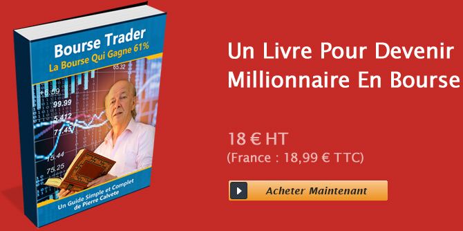 Par ailleurs je me permets de dire que la STRATÉGIE BOURSE TRADER est valable toute la vie et est valable pour l'ACHAT des SICAV, des FCP, des ACTIONS, des BONS DE SOUSCRIPTIONS, des CERTIFICATS, des TRACKERS, des WARRANTS, des OPTIONS, des DEVISES sur le FOREX,... et même l'or, les œuvres d'art. En fait, sur toutes les valeurs négociées sur Terre.